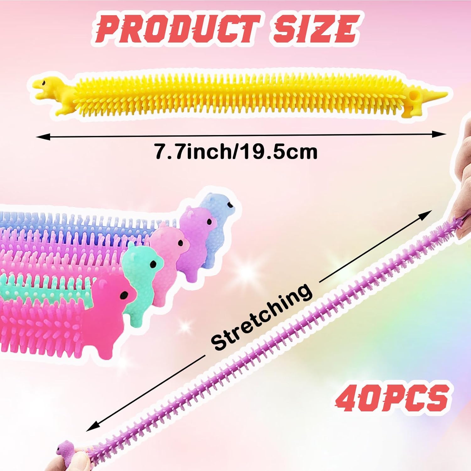 40 PCS Stretchy Fidget Toy,Dinosaur Sensory Toys Bulk Stretch Worm Toys,Colorful Stretchy Strings Fidget Toy for Kids and Adults Stress Relief,Goodie Bag Fillers,Party Favor
