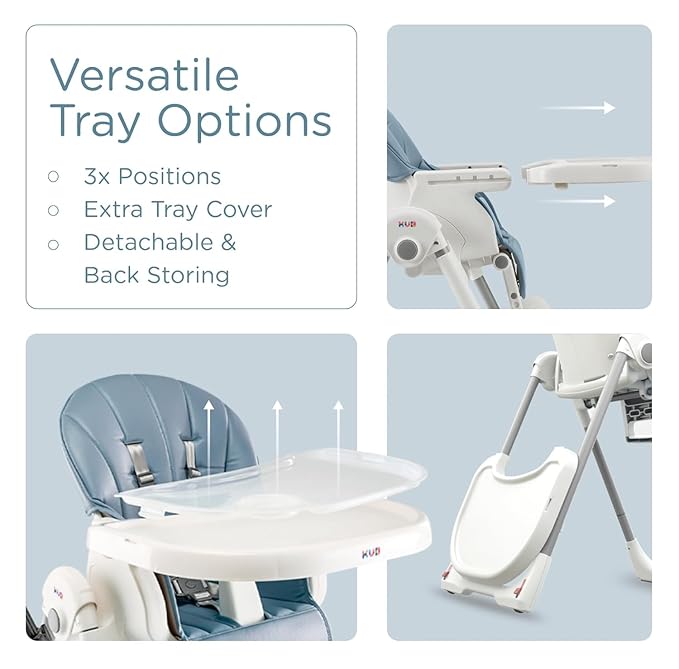 KÜB 3-in-1 Foldable Baby High Chair, 7 Height & 4 Recline Adjustable Seat & Tray for Easy Clean, 2 Locking Wheels, Multifunctional Infant High Chairs for Babies and Toddlers (Blue, with Toys)