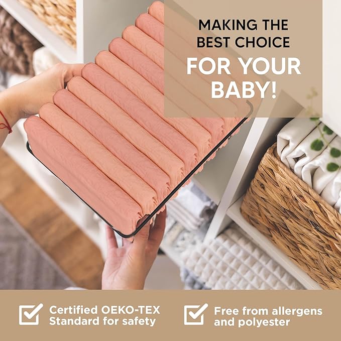 - BABY SLEEPS BETTER, SO MOM CAN SLEEP LONGER: Made from 100% organic muslin knit cotton, these bassinet sheets for baby girls will never lose their softness, stretchiness, and breathability. Now mama can get her extra beauty rest while baby stays sleeping soundly!