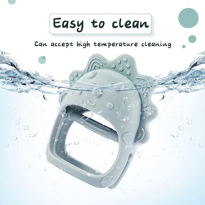 - MADE OF FOOD-GRADE-SILICONE: The baby teething toy are made of food grade silicone, which is non-toxic, BPA free, lead free and phthalate free. Apart from chemical safety, the physical safety is also guaranteed with the one-piece design preventing from any choking hazard. Plus, this product is soft and durable. Wise parents will always create a safe environment for their baby to grow up carefreelly.