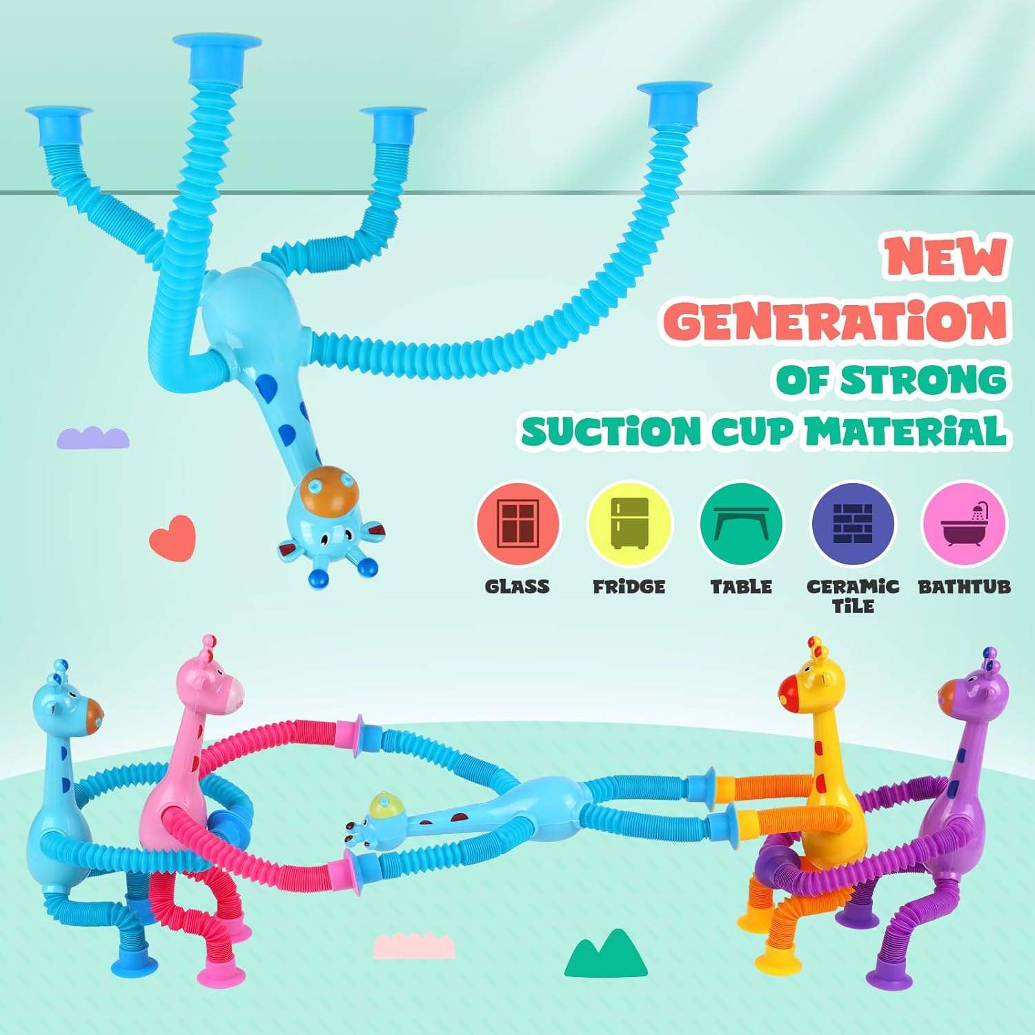 Ochine 8 Pack Telescopic Suction Cup Giraffe Toy, Sensory Pop Tubes for Toddlers, Fidget Toys for 3 4 5 6 7 8 9 Year Old Boys & Girls,Imaginative Play & Stimulating Creative Learning Toys