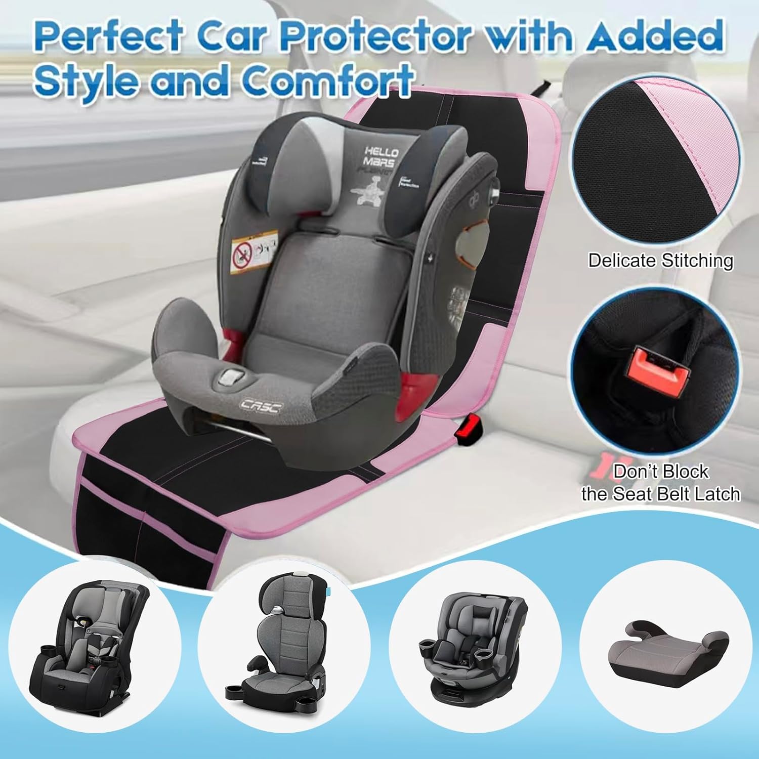 Child Car Seat Protector, 2 Pack with Mesh Pockets & Non-Slip Backing, 600D Durable (Pink, Standard)