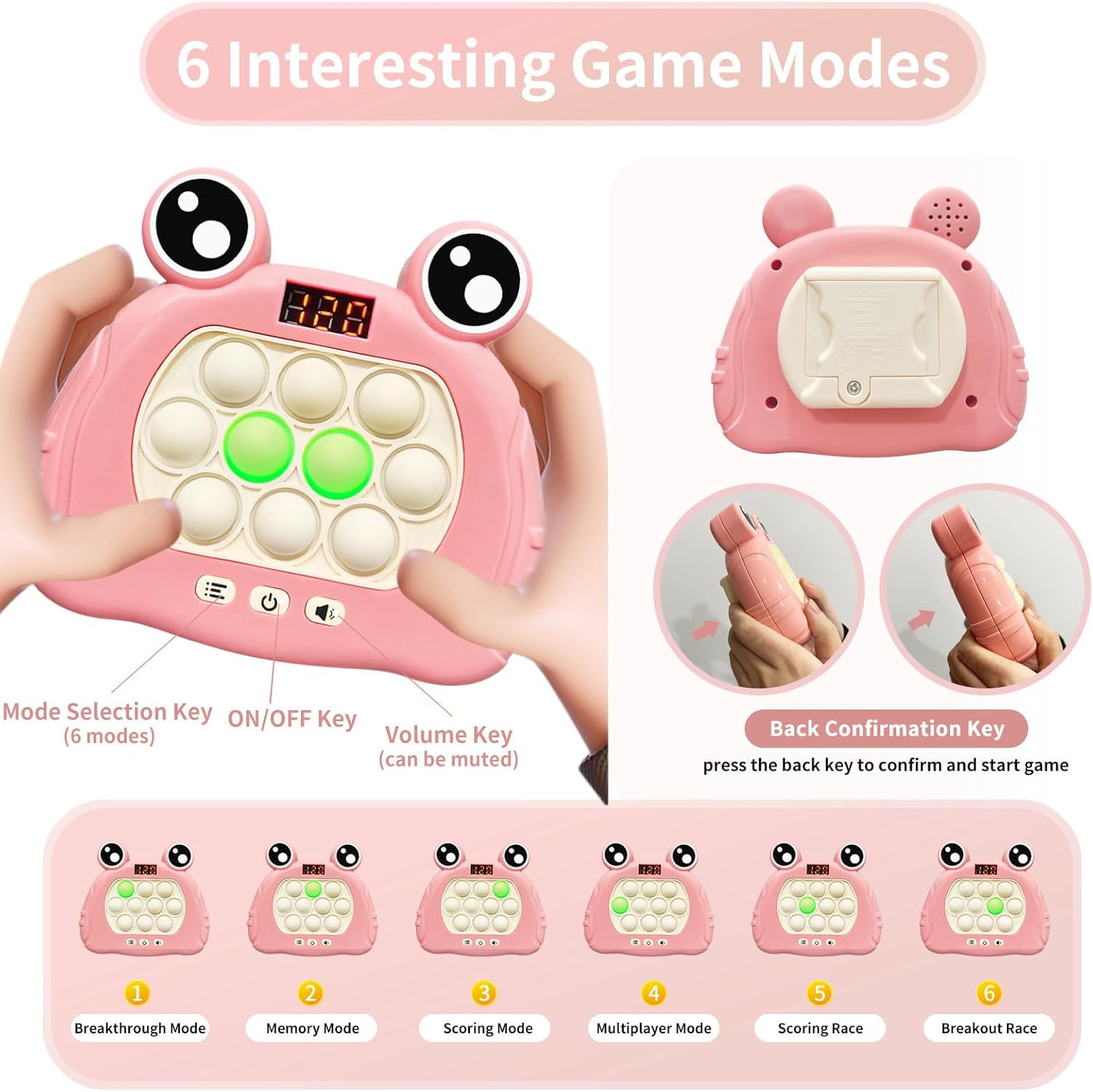 Pop Quick Push Game Light Up Fidget Toys Handheld Puzzle Press Popping Game Console for Kids Ages 3+ Adult Pink Frog