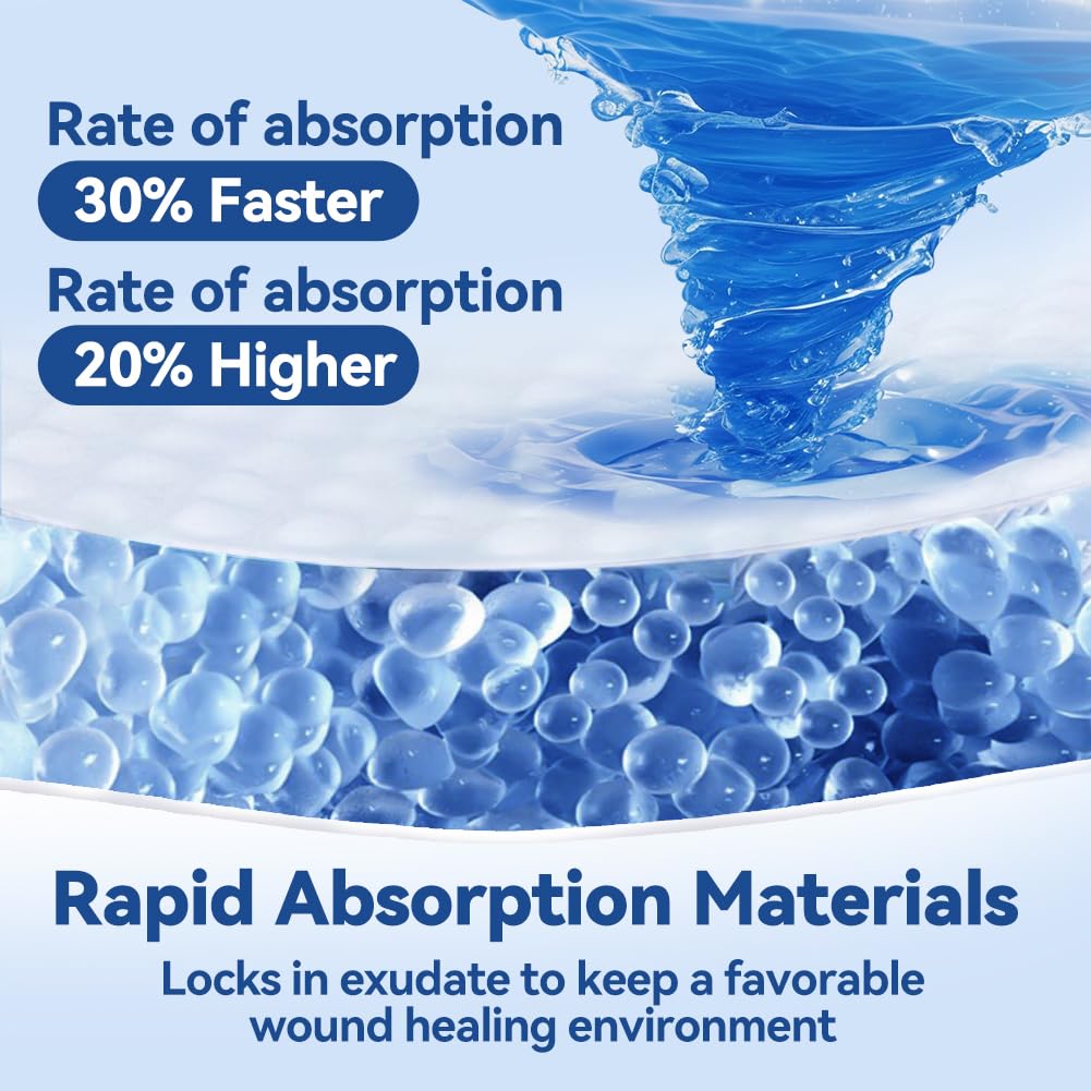 - 360° Outward Extension, More elastic&Less dislodgement - The unique internal cutting design allows the dressing to extend 360° outward, which is more elastic and less taut, fits the skin better.This ultra-absorbent bandage has excellent breathability, which reduces the burden of wound care by preventing the bandage from compressing the wound or falling off due to absorbing too much exudate