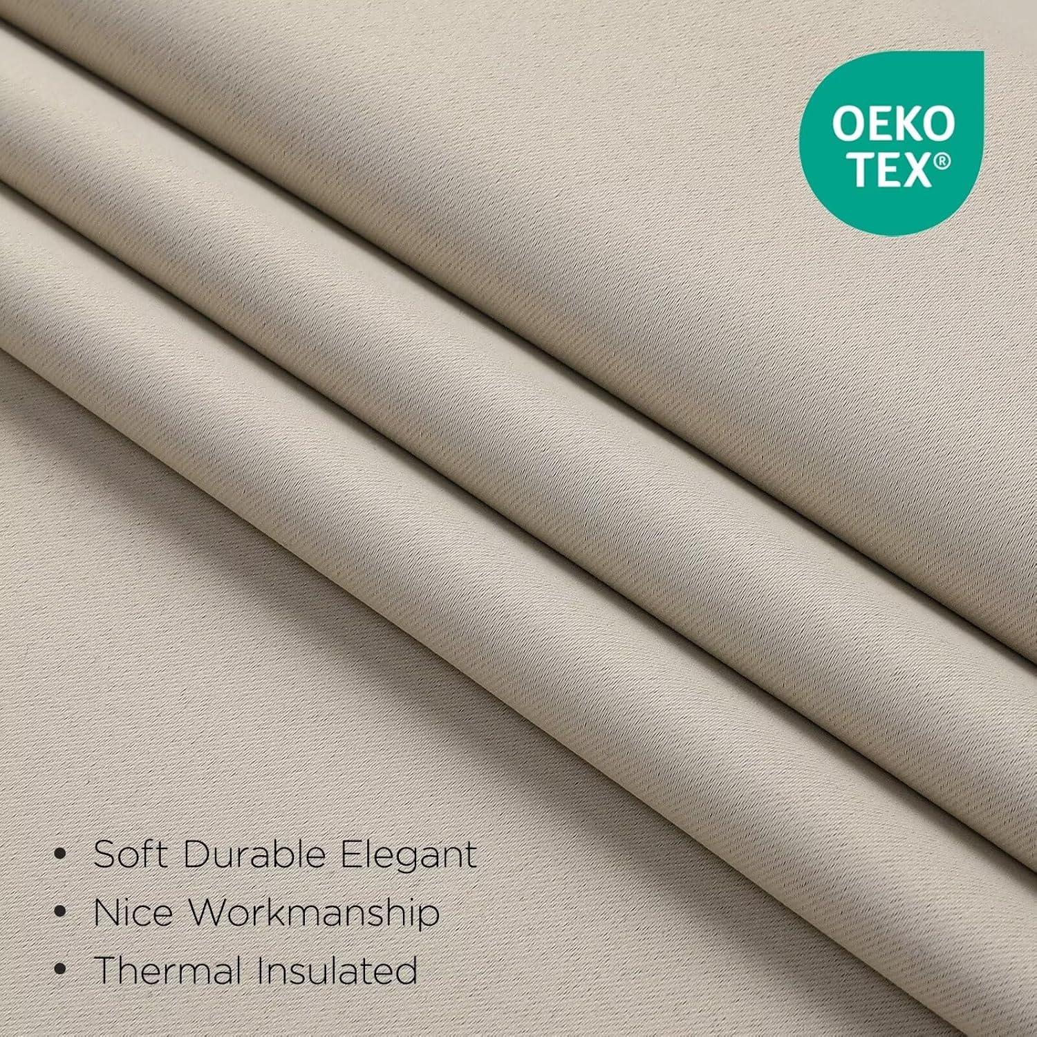 Joydeco 90 Inch Blackout Curtains for Bedroom, Thermal Insulated Black Out Curtains 2 Panels Set, Room Darkening Drapes for Living Room Window Rod Pocket Back Tab (W52 x L90 Inch, Light Beige)