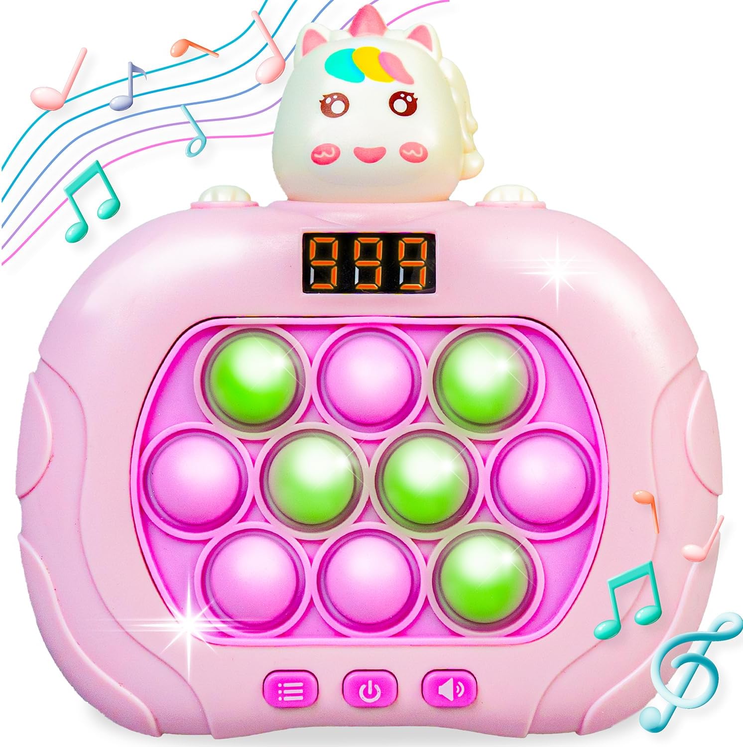 Marlo & Buzz Fast Push Game Toy with Popit Game Controller, Pop Fidget Animal with LED Screen - Sensory and Memory Console, Quick Bubble Light Toy, Pocket Games (Unicorn)