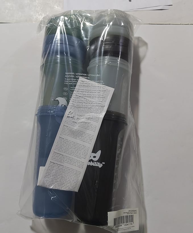 Herobility Double Anti-Colic Baby Bottles – 12 fl oz/340ml – 4-Pack – Multicolor – Denim, Black, Dusky Green, Gray