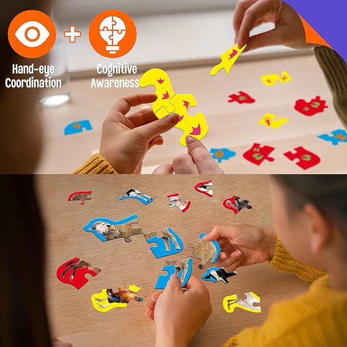 - Value Pack: 12 farm animal puzzles in an elegant gift box, easy storage and stay organized. Each puzzle features beautifully detailed illustrations of various farm animals, allowing children to learn about different species while having fun. Animals includes cow, sheep, rabbit, rooster, owl, etc.