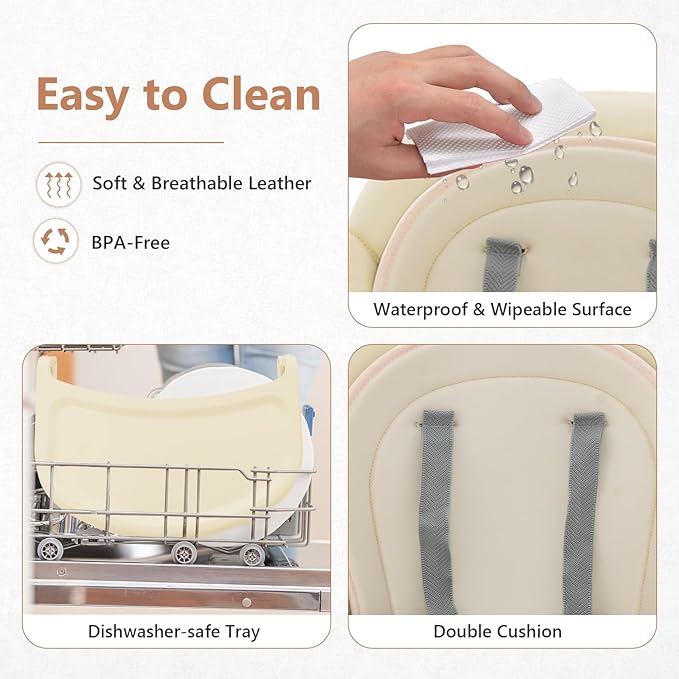 - Easy to Install & Clean: The assembly of this dining chair is very simple. Most parts are connected by buckle-connected. Various modes of transformation are convenient and fast. moreover, the PU cushions and trays are removable for cleaning.