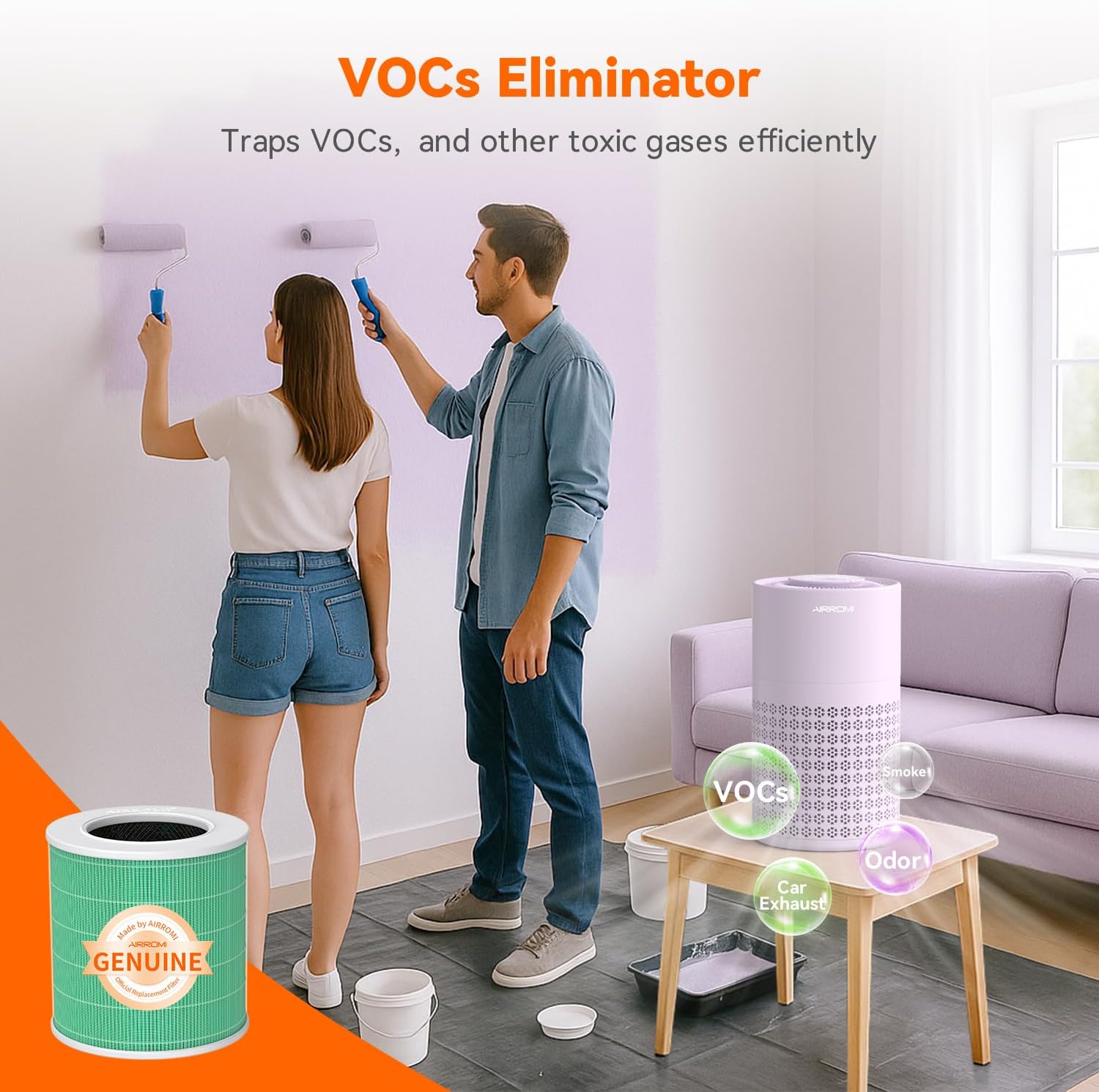 - 😄【Super Purification】: Our Size: 6.9"D x6.9"W x 12.4"H, though this portable air purifier is compact, it can generates more than 673.6gal/2550L clean air /min. AIRROMI A2001 bedroom air purifier utilizes 2023 newly advanced filter system: 40 ppi pre-filter, True HEPA filter, and activated carbon filter. This combination effectively captures 99.97% of particles as small as 0.3 microns, including pet dander, hair,pollen, smoke, Kitchenodors, dust and Mold Smoke . AIRROMI A2001 Air Purifier just want to help you to breath the cleaner air.