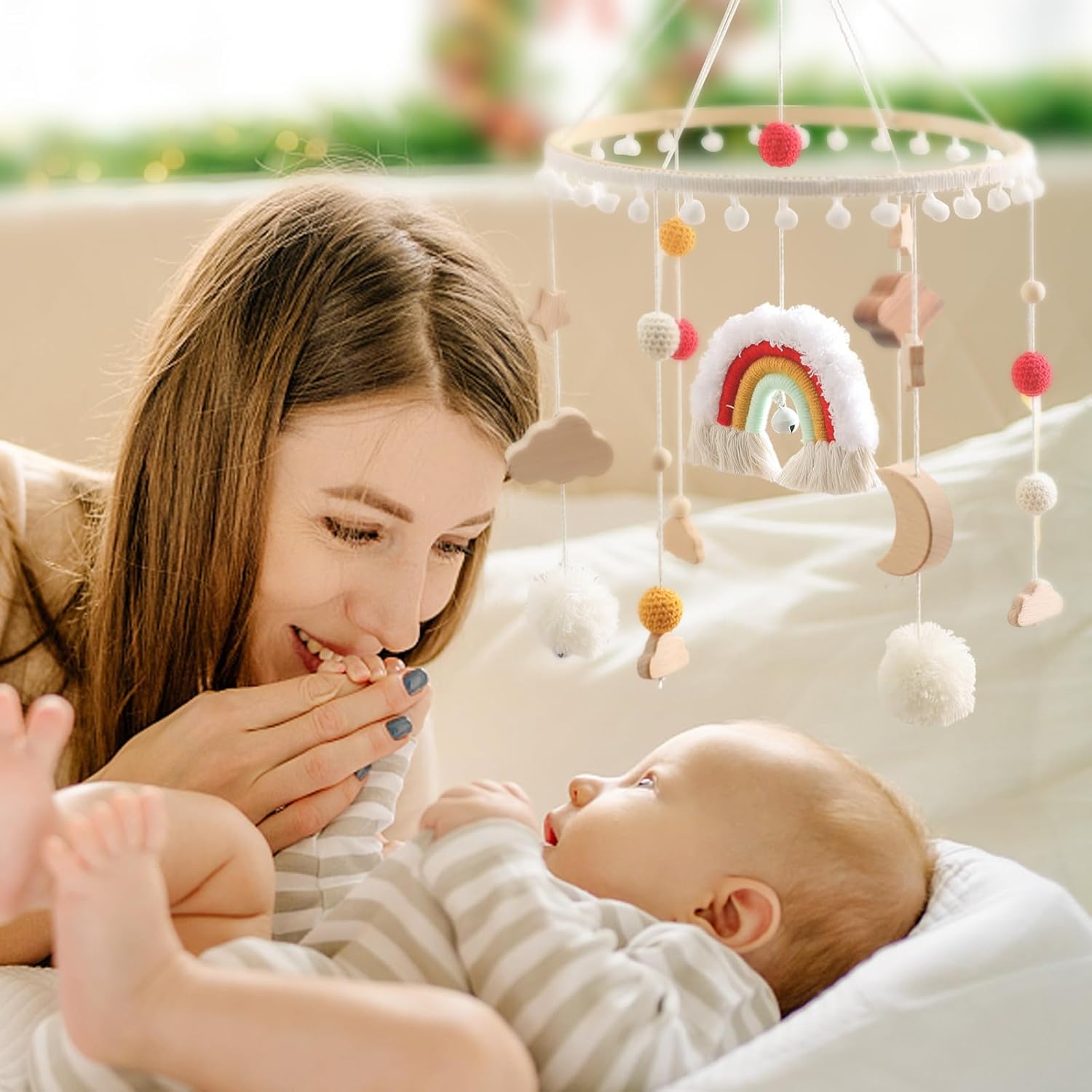- 🌈RAINBOW BABY MOBILE - Rainbow baby mobile is in colorful and natural colors . Rainbow crib mobile, the novel design is more popular with babies. Perfectly match any nursery decor or boho decor for any room of the house.