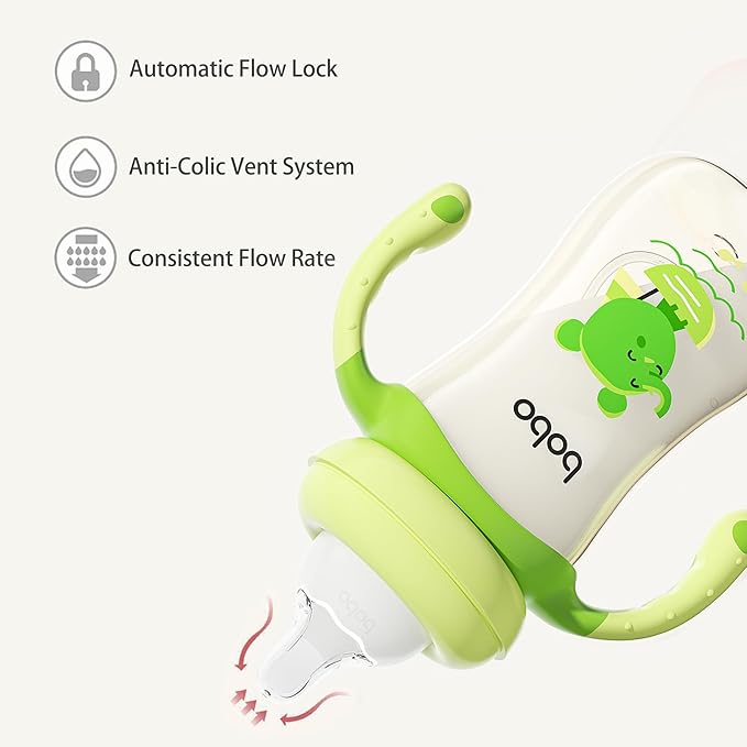 - The bottom of the nipple has intelligent pressure regulating valve, balance internal and external pressure, milk and air separation, to avoid the baby breathing too much air caused by colic flatulence.