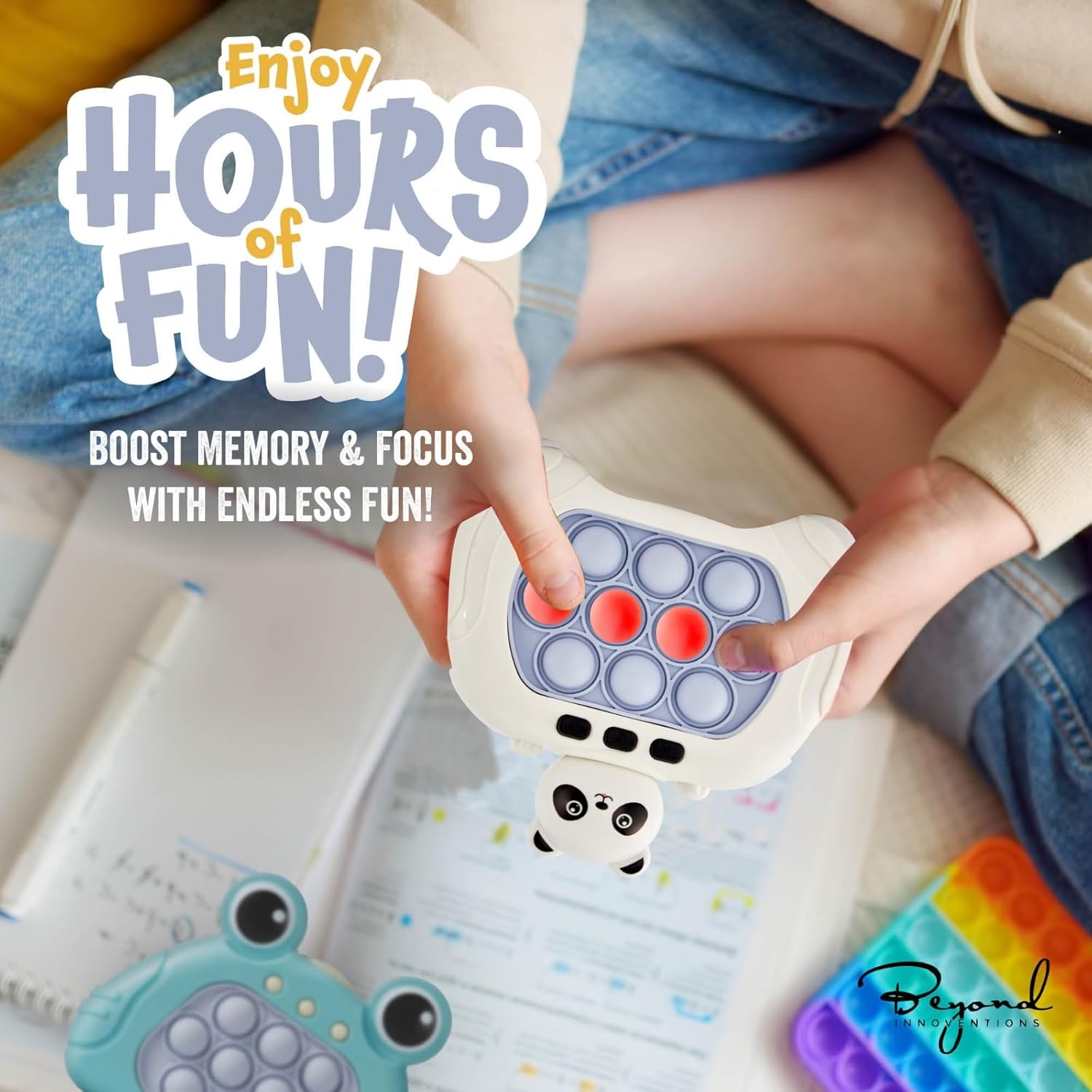 - PROMOTES HAND-EYE COORDINATION: This pop fidget game is designed to enhance hand-eye coordination. With the quick push bubble game, kids can improve their reaction speed and reflexes, making it an ideal addition to their playtime routine.