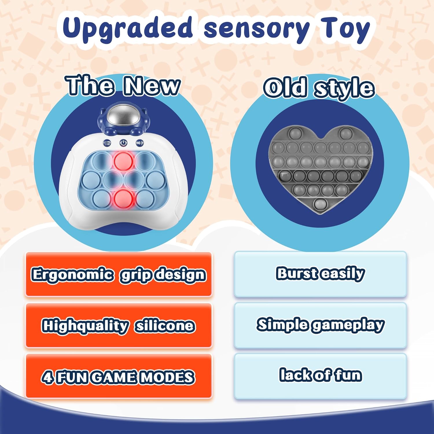 - STRESS RELIEF - Our pop game fidget toy is not only suitable for children but also for adults. Each press of the bubbles brings pleasant tactile and sound feedback, providing endless sensory exploration and fun while soothing stress.