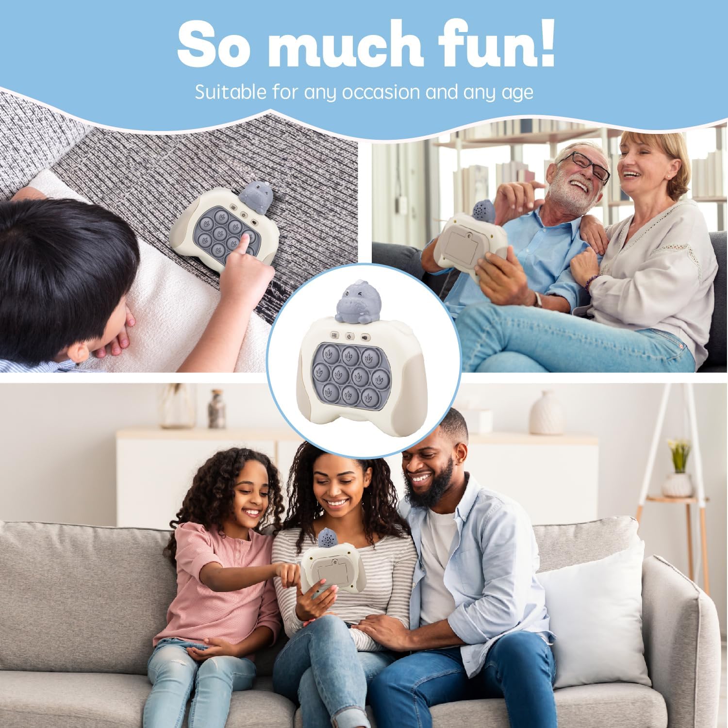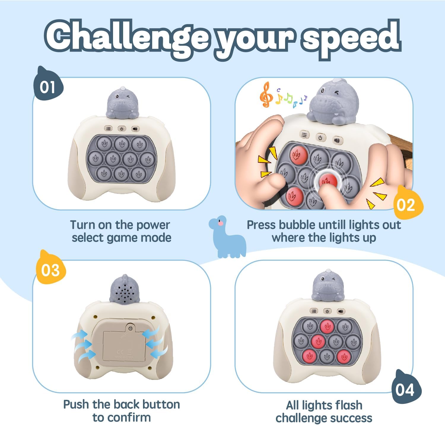 - The best children's gift: pop fidget game can cultivate children's hand eye coordination ability and reaction speed, help children learn in games, and enhance their confidence and sense of achievement. In addition, as it is suitable for children of all ages, it can also serve as a great parent-child interactive game.