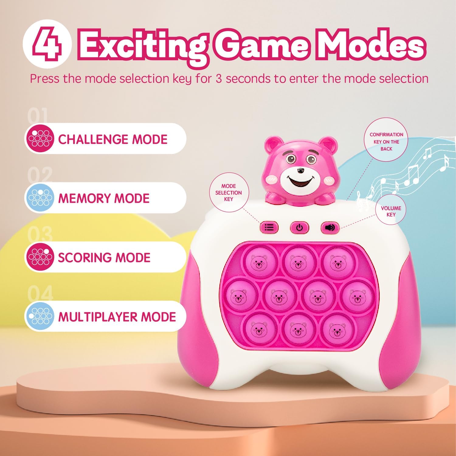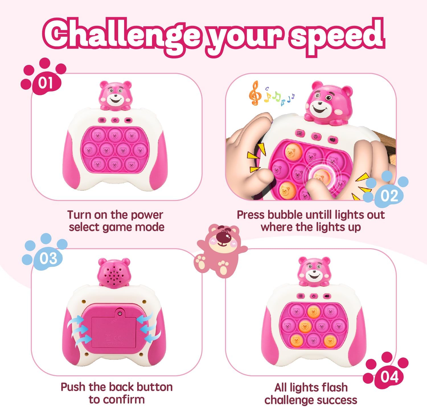 Fast Push Game,Light up pop Game Light up Fidget Toy,Fast Quick Push Bubble Game,pop pro Light up Game,Quick Push pop Game Birthday Xmas Gifts for Boys Girls Adults (Strawberry Bear:Rose Red)