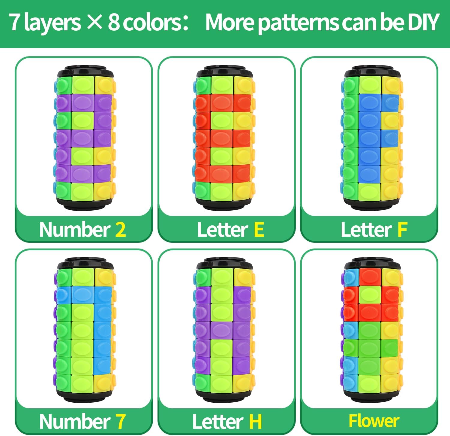 Rotate and Slide Puzzle, Finger Spinner Puzzle, Fidget Toys, Decompression Toy, 8 Colors,7 Layers, Educational Sensory Toy for Kids Adults (8 Colors X 7 Layers)