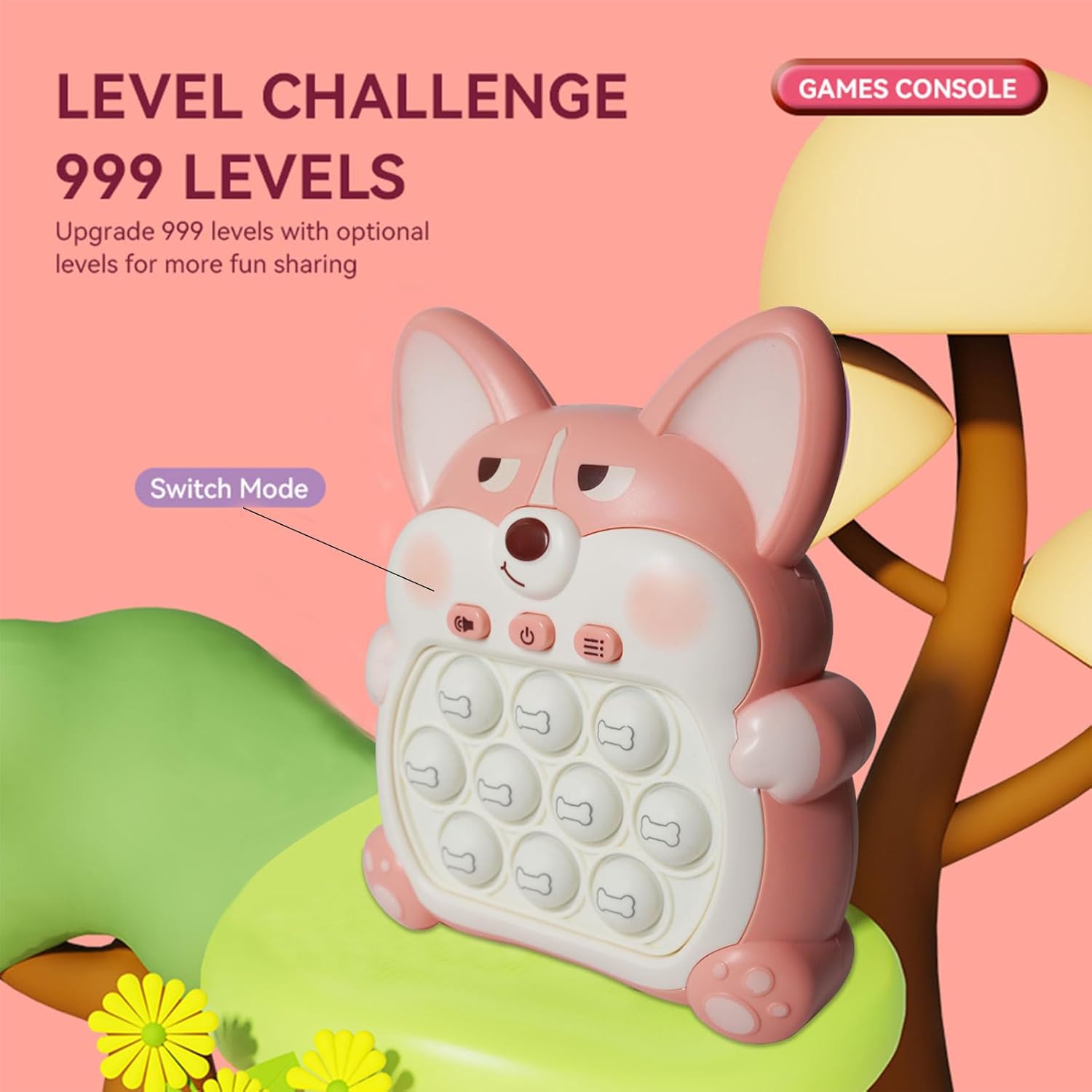 Light Up Pop Fidget Sensory Toys Handheld Game,Push Bubble Pop Puzzle Game Machine,Stress Relief Gifts for Kids Adults(Corgi Pink)