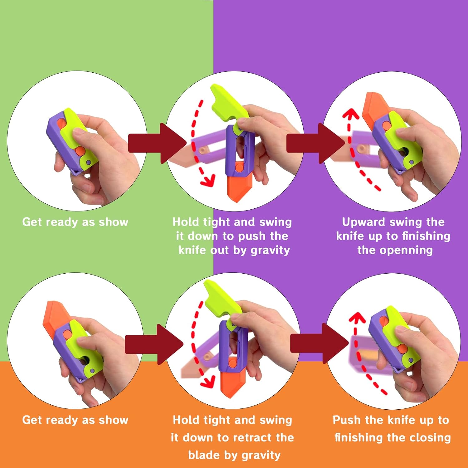 - 🔫【High Quality Material】This is a cool one-handed anxiety stress reliever pistols and knife toy, made of sturdy ABS plastic with smooth edges that won't hurt your hands. When you feel irritable, anxious or bored, you can make the gun chamber bounce back and forth continuously by pulling the trigger, which can relieve anxiety. The 3d Carrot Knife Toy features a specially designed mechanism that allows for free and easy switching of shapes, and the switching can be done with the retractable head.