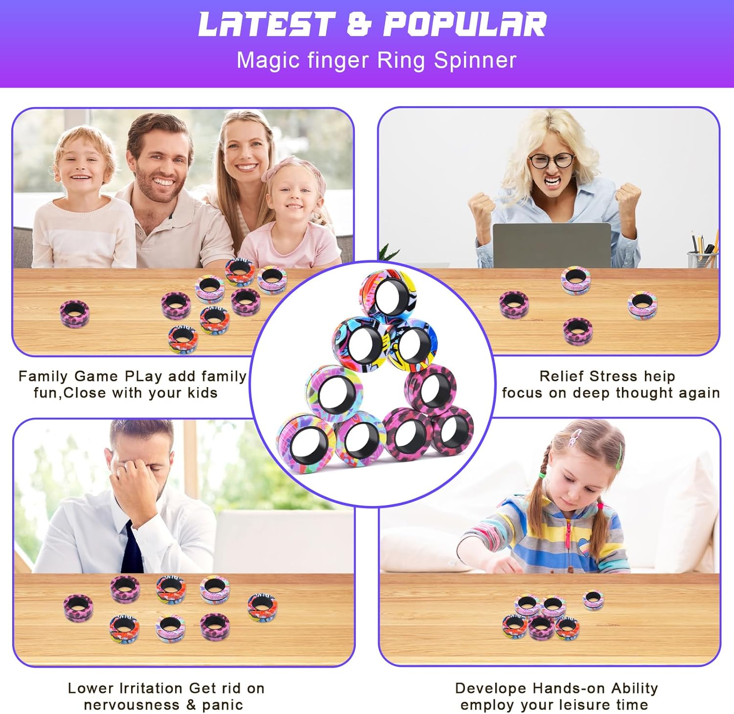 - ANTI-STRESS MAGNETIC SPIN RINGS: Magnetic fidget toys to relieve anxiety, stress, focus. Magnetic finger fidget toys are ideal for Autism, ADHD, or anyone with busy fingers. Plus, magnetic rings toy can help curb unwanted habits like nail biting, smoking