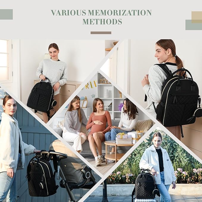 - 4 Ways to Use: Versatile as a travel backpack, attached to a stroller, secured to the luggage strap or top handle carry. This nappy bag can be worn as diaper bag organizer, maternity hospital bag. Breathable, durable, and adaptable from baby to toddler