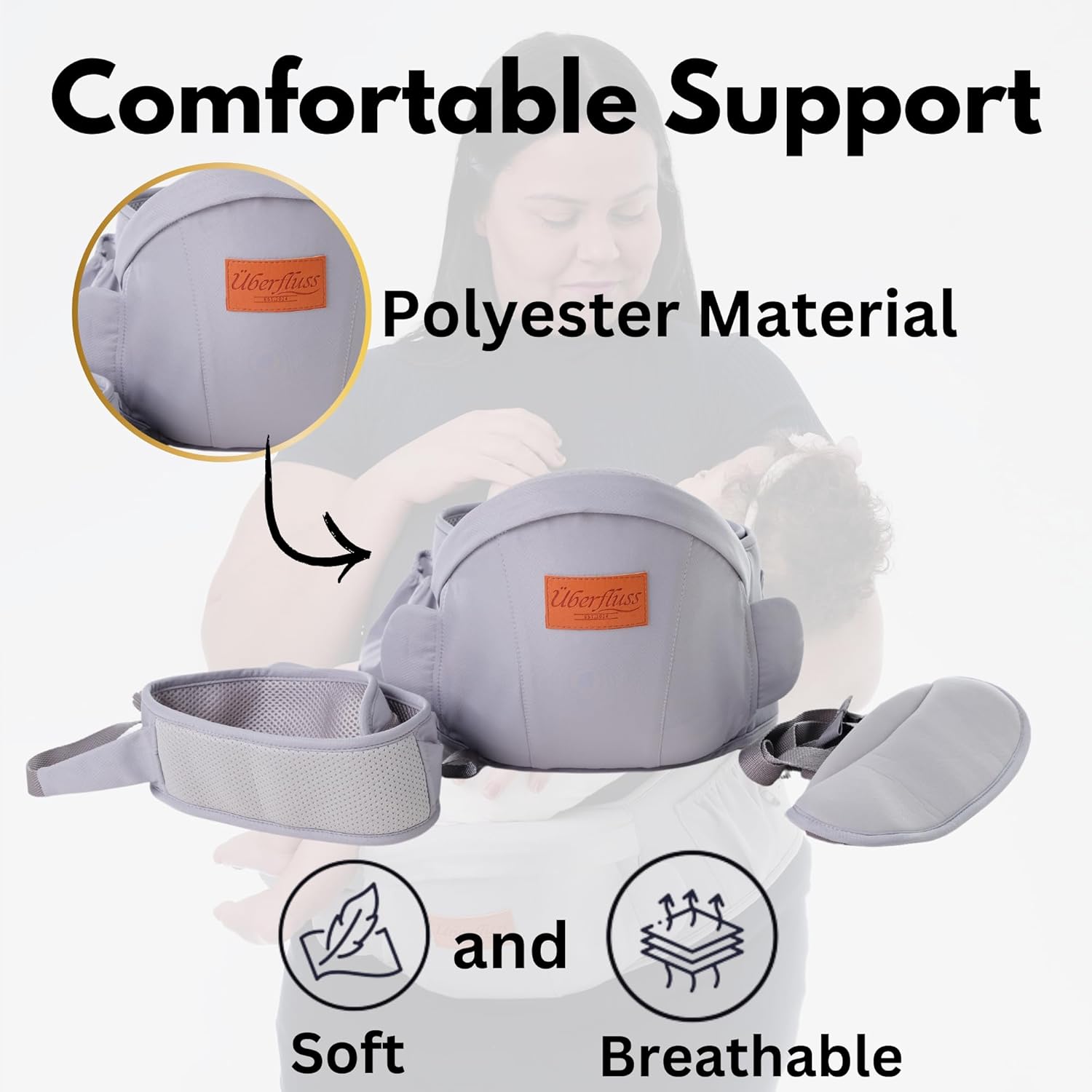 - 【All-Day Comfort】Made with soft, breathable polyester, this baby carrier ensures all-day comfort for your little one. Designed to evenly distribute weight across your hips and lower back, it reduces strain and supports extended wear for parents.
