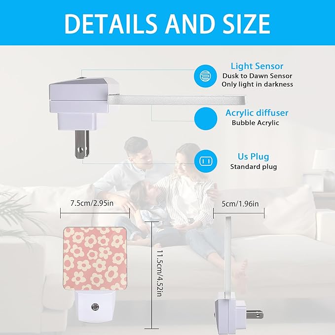 - 【Soft Light】 - This Night Light Emits A Soft, Warm Glow That Provides Enough Light Without Interrupting Sleep. It Is Perfect For Nurseries, Children'S Rooms And Other Spaces That Need A Little Extra Light At Night, This Plug-In Night Light Is Suitable For Boys And Girls Rooms, Bathrooms, Study, Bedrooms, Kitchens And Living Rooms, Bringing A Fresh Look To Your Home Decor.
