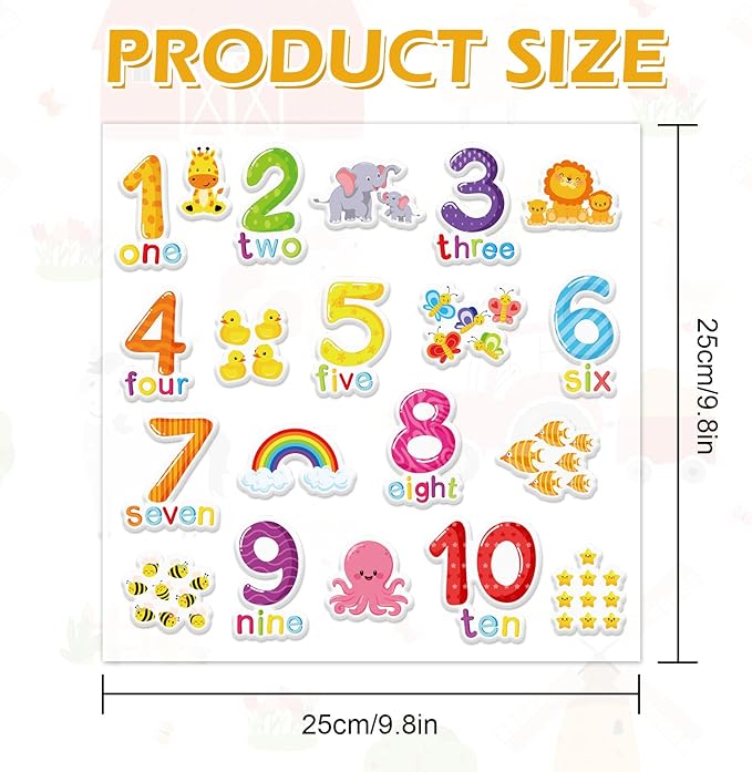 - Fun Design - Our thick gel stickers contains numbers 1-10 with their corresponding words, and each number is represented by the corresponding number of animals to help you learn more easily, like 3 for three lions, is a very cute set of number learning toys. It arouses children’s interest greatly, making kids learn the numbers and words as well as animals.