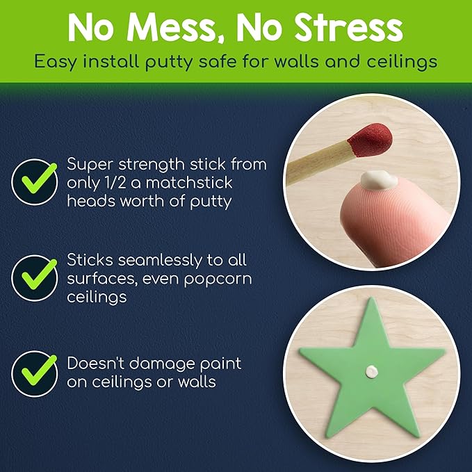 - Secure & Damage-Free Ceiling Stickers - We know how important your ceilings are, that's why our glow in the dark ceiling stickers are like magic – they stick securely without any harm to your walls or any residue left behind.