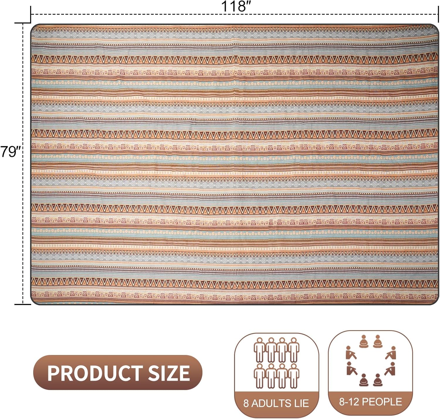 - EXTRA LARGE & FOLDABLE - Unfolded portable picnic blanket is 9'X 6'. Can accommodate 8-10 people to sit on it idealfor patio, camper, RV road trips, camping, balcony, picnic, porch, deck and garden, or simply to have a clean and comfortable picnic mat for your kids to play on.