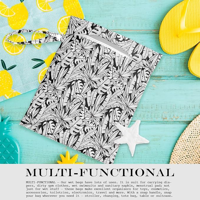 - MULTI-FUNCTIONAL – Our wet bags have lots of uses. It is suit for carrying diapers, dirty gym clothes, wet swimsuits and sanitary napkin, menstrual pad; not just for wet stuff - these bags make excellent organizers for toys, cosmetics, accessories, toiletries, electronics, travel and more. With a snap handle, snap your bag wherever you need it - , changing,tote bag, table or suitcase.