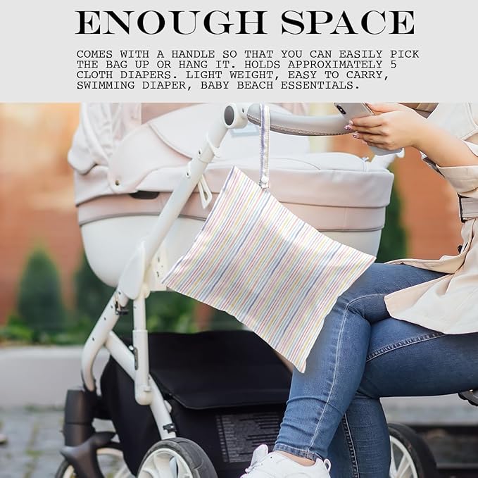 • ENOUGH SPACE - 26cm x 32cm (approx.: 12.5” x 10.2”). Comes with a handle so that you can easily pick the bag up or hang it. Holds approximately 5 cloth diapers. Light weight, easy to carry, swimming diaper, beach essentials.