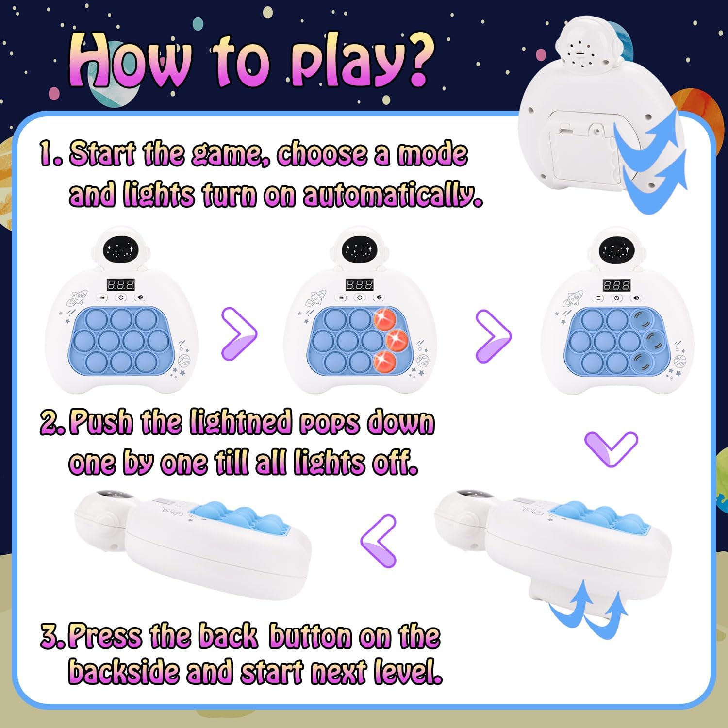 Quick Push Console Game, Pop Game Light up Fidget Toy, Handheld Puzzle Game Fast Push Bubble Game with Game Clearance Screen for Kids Teens Adults (Astronaut)
