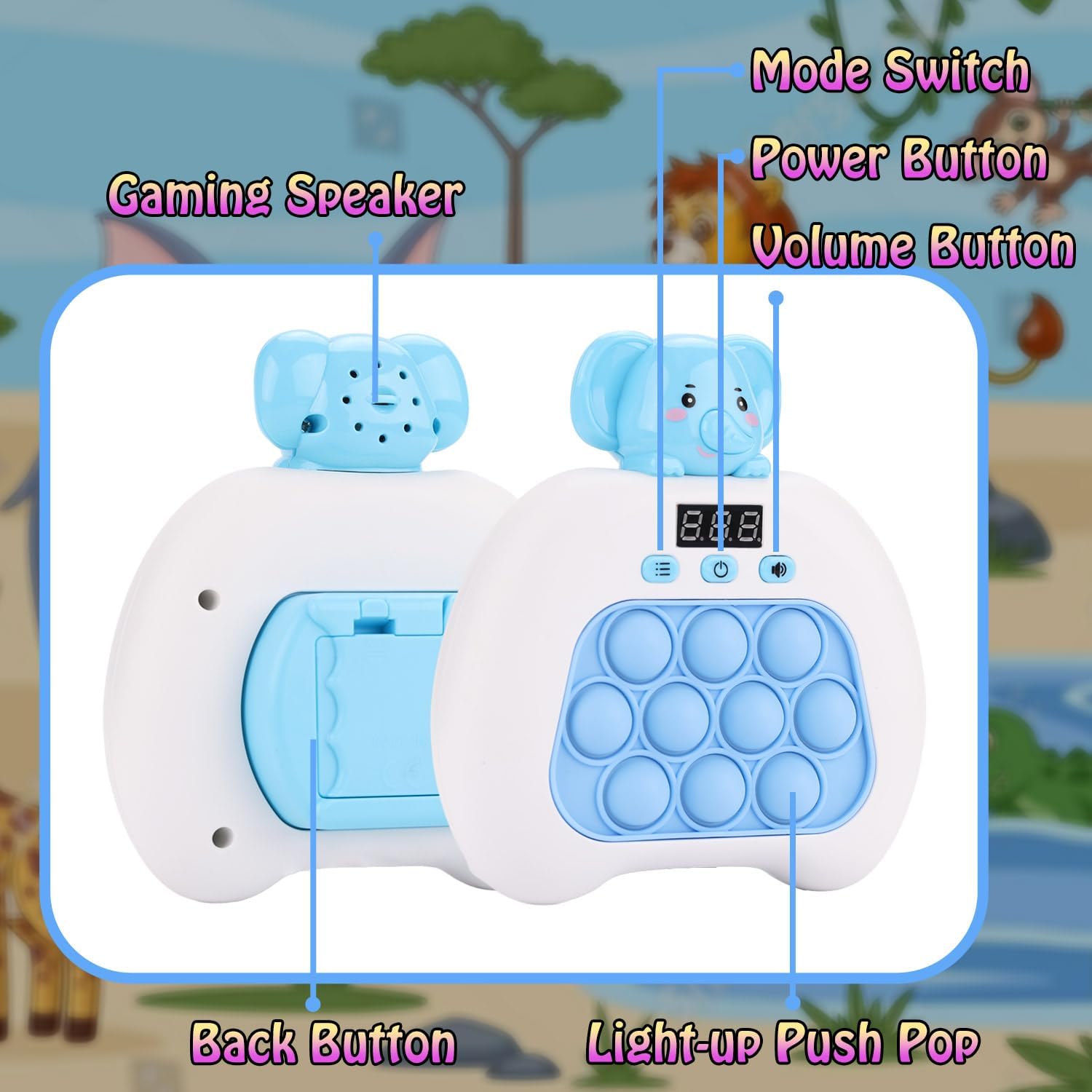 Quick Push Console Game, Pop Game Light up Fidget Toy, Handheld Puzzle Game Fast Push Bubble Game with Game Clearance Screen for Kids Teens Adults (Elephant)