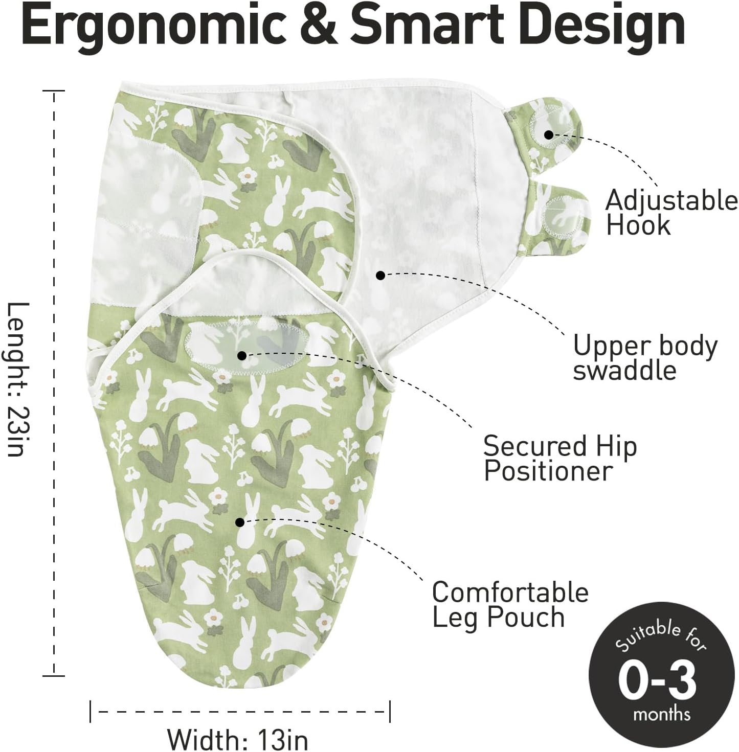 - Adjustable: Swaddling your baby snugly becomes easy with our adjustable fabric wings that fasten securely with hook and loop to create the perfect fit. You can adjust the tightness of the baby swaddle wrap with your baby's growth