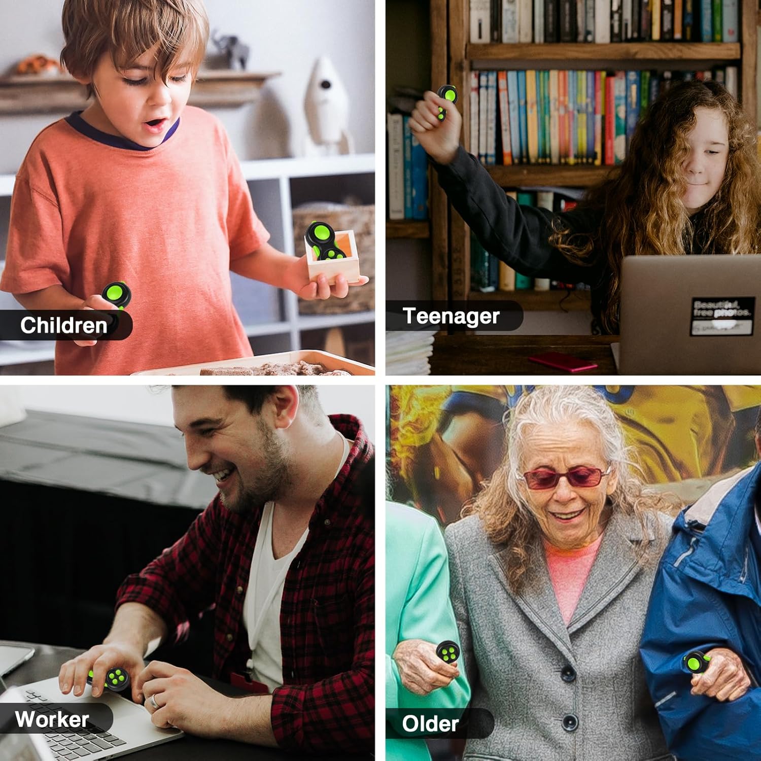 - With 8 Fidget Functions the Fidget Toy Provides Never-Ending Fidgeting! The 8 Fidget Functions Include - A Clickable Omnidirectional Controller - 4 Toy Colored Keys (2 Clickable Keys and 2 Silent Keys For Discreet Fidgeting) - A Never-Ending Gear Roller - A Hold Textured Massage Roller - A Clickable Key - A Spinnable Dial - A Spring Loaded Slide - A Hold Textured "Tranquil" Section