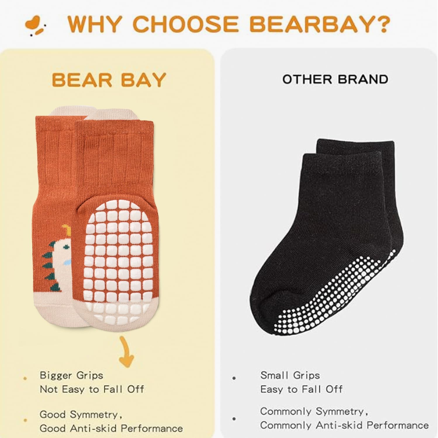 • Comfortable: Premium breathable cotton blend gives Bearbay socks excellent air permeability and ductility as well as warmth. Hand linked Seamless smooth toe and reinforced “C” heel as well as no-pinch cuff offering all day comfort, breathability and softness to baby’s foot