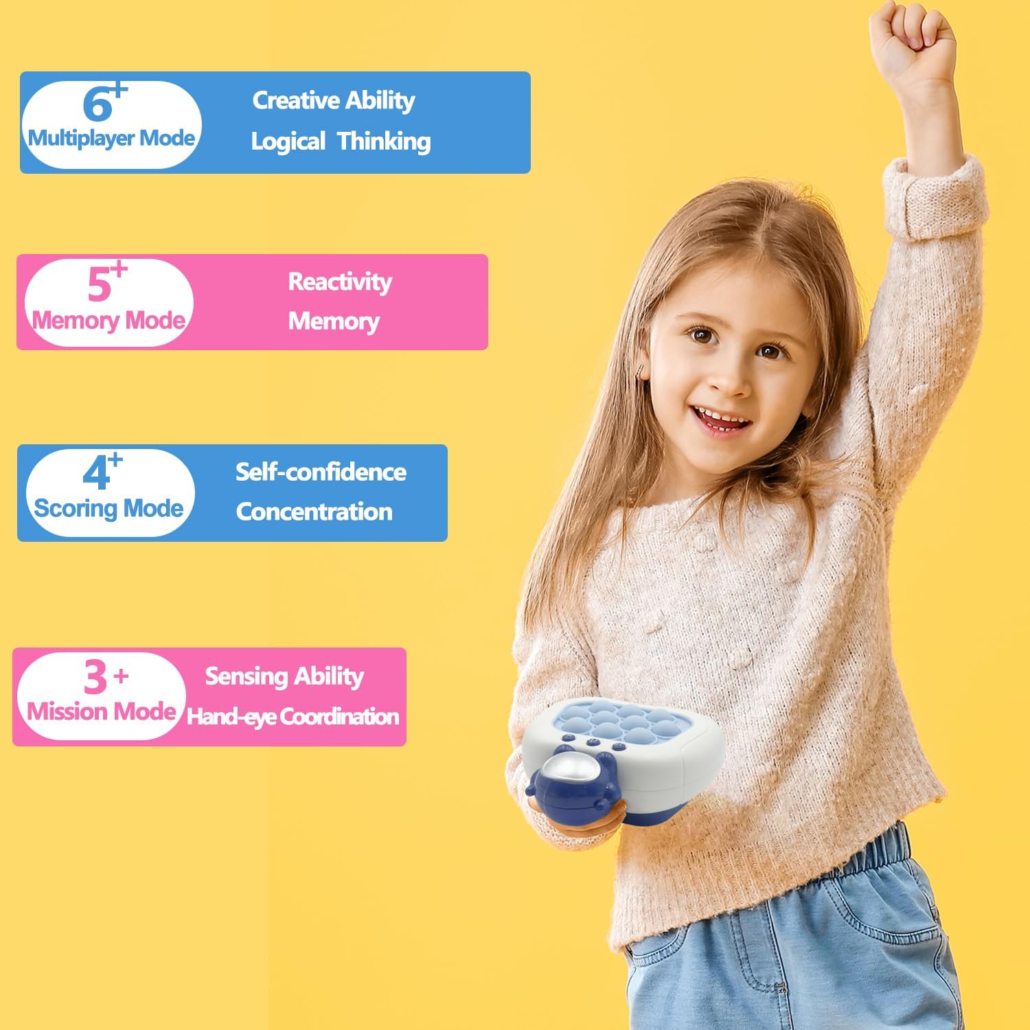 - 【Mini Hanheld Game】This latest pop game machine can break through levels by pushing quickly. Let your kids think positively and react quickly in challenging levels and exercise your child's concentration, memory, reaction, hand-eye coordination and hands-on ability.
