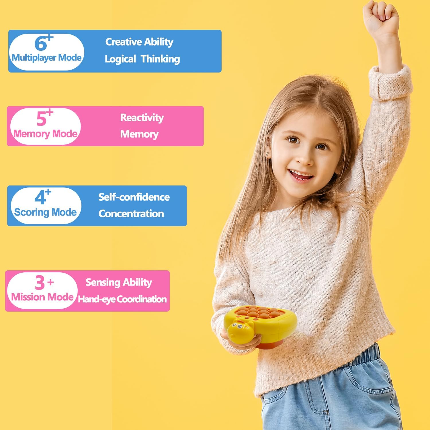 - 【Mini Hanheld Game】This latest pop game machine can break through levels by pushing quickly. Let your kids think positively and react quickly in challenging levels and exercise your child's concentration, memory, reaction, hand-eye coordination and hands-on ability.
