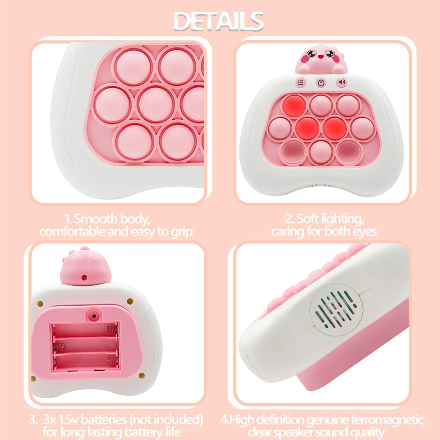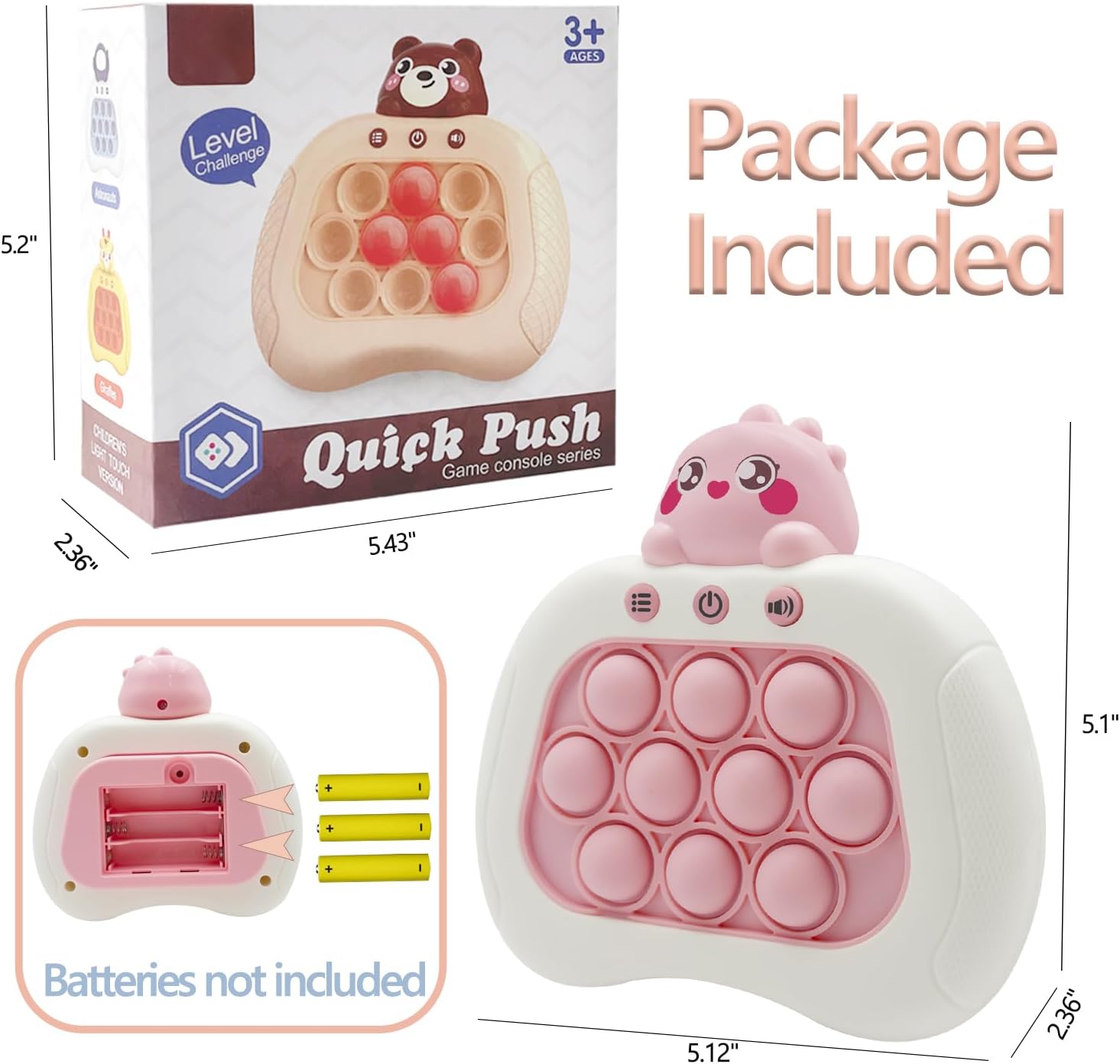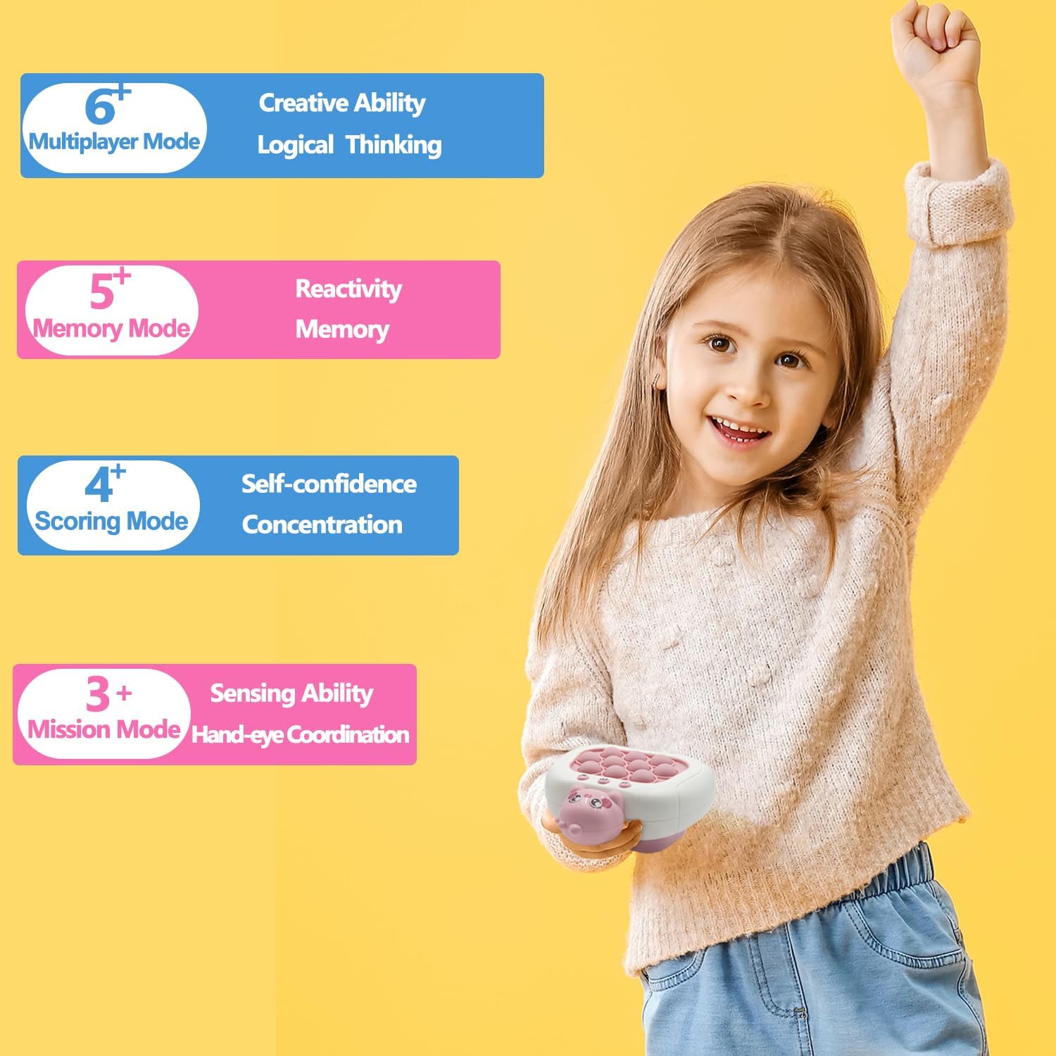 - 【Mini Hanheld Game】This latest pop game machine can break through levels by pushing quickly. Let your kids think positively and react quickly in challenging levels and exercise your child's concentration, memory, reaction, hand-eye coordination and hands-on ability.