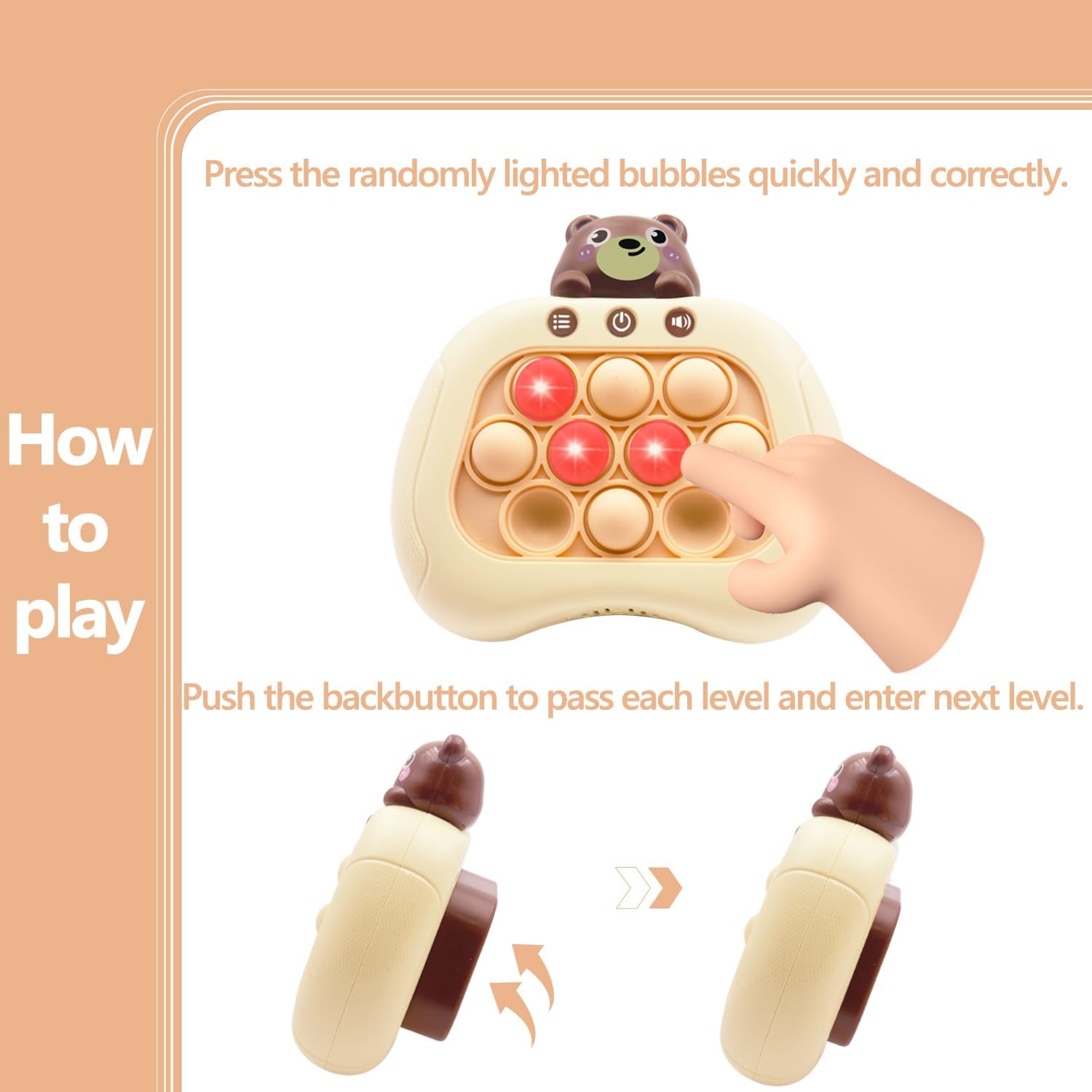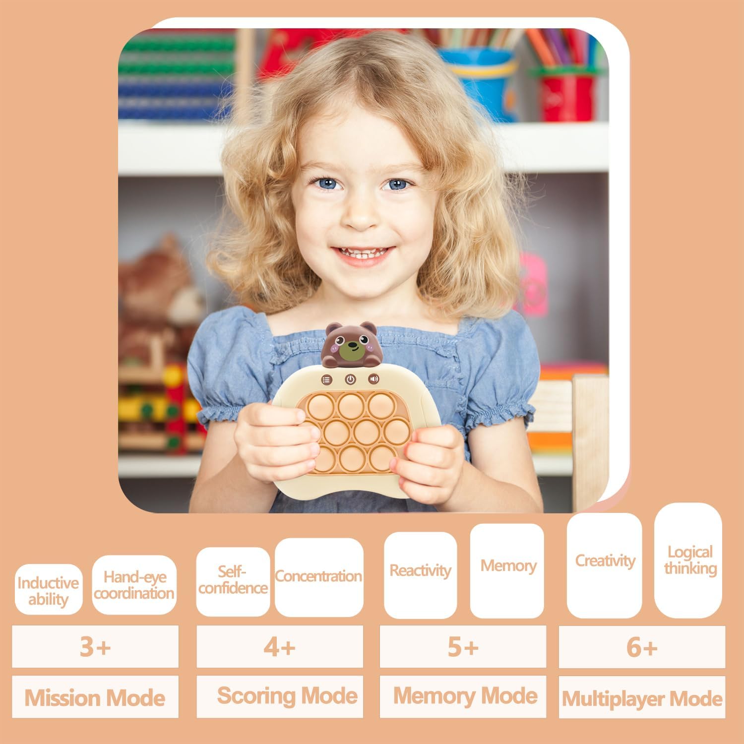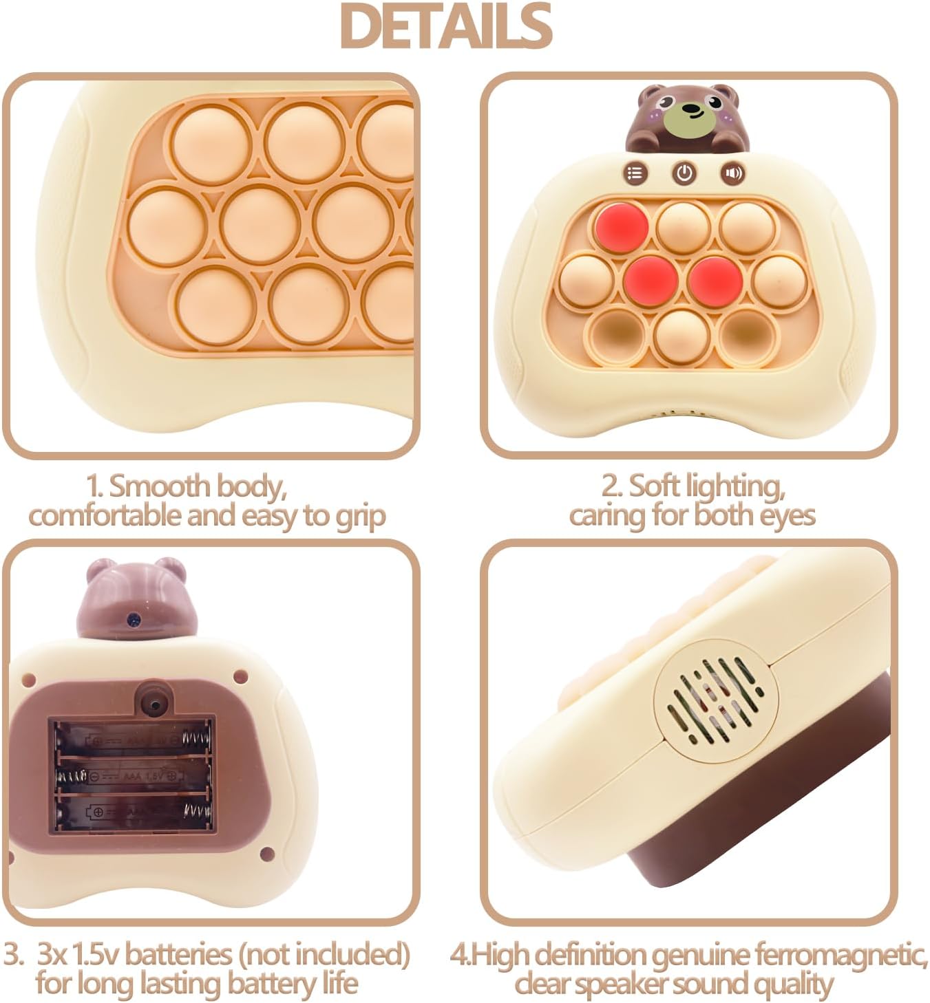 Quick Push Pop Game Fidget Toys Pro for Kids Adults, Handheld Puzzle Game Machine, Squeeze Poppet Sensory Fast Push Bubble Toy,Party Game,Birthday Gitfs Bear