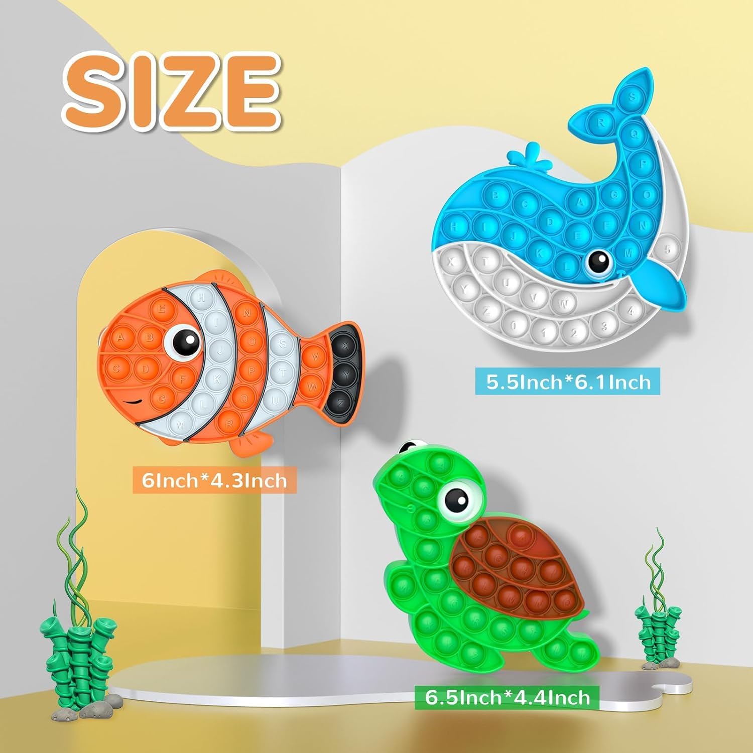 3 Pack Push Bubble Fidget Sensory Toys, Sensory Fidget Poppers Push Bubble Toy, Silicone Squeeze Autism Anxiety Stress Relief Educational Popping Toys for Kids Adults - Clown Fish, Whale