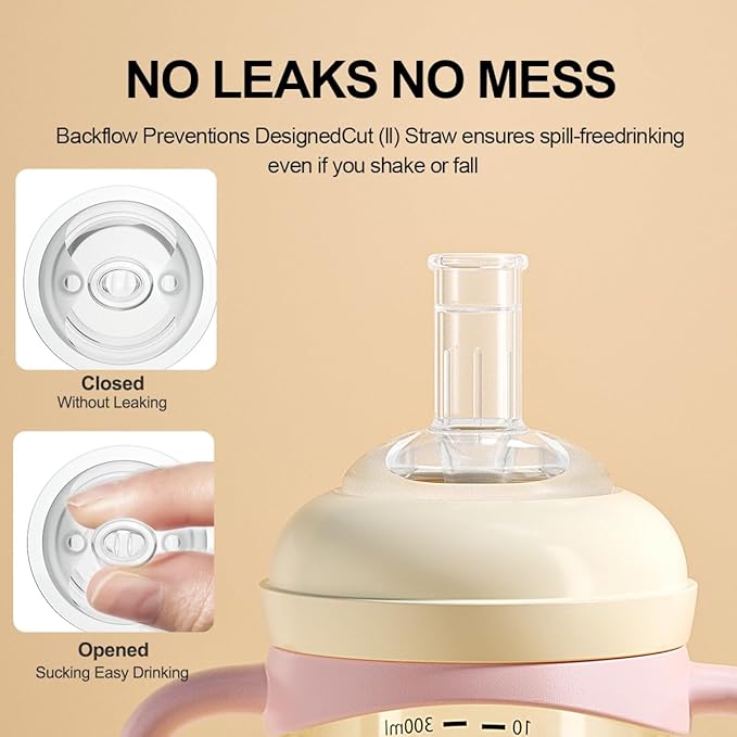 - ★Easy to Assemble & Wash: All parts of this baby sippy cup with straw are removable to facilitate thorough cleaning, which is safe for use in dishwasher (top rack only), electric and microwave sterilizers, or boiling water.
