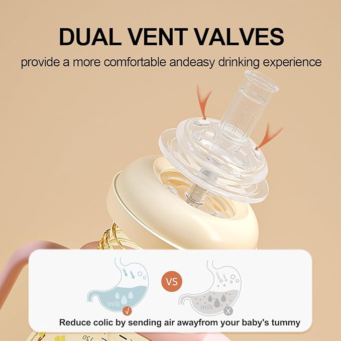 - ★Spill Proof & Anti Colic: Baby can control the pace according to their suction ability with double II-shaped value without bite, which is spill-free drinking even if you shake or fall; Design with double breather value can minimize excess air, and colic and prevent choking.