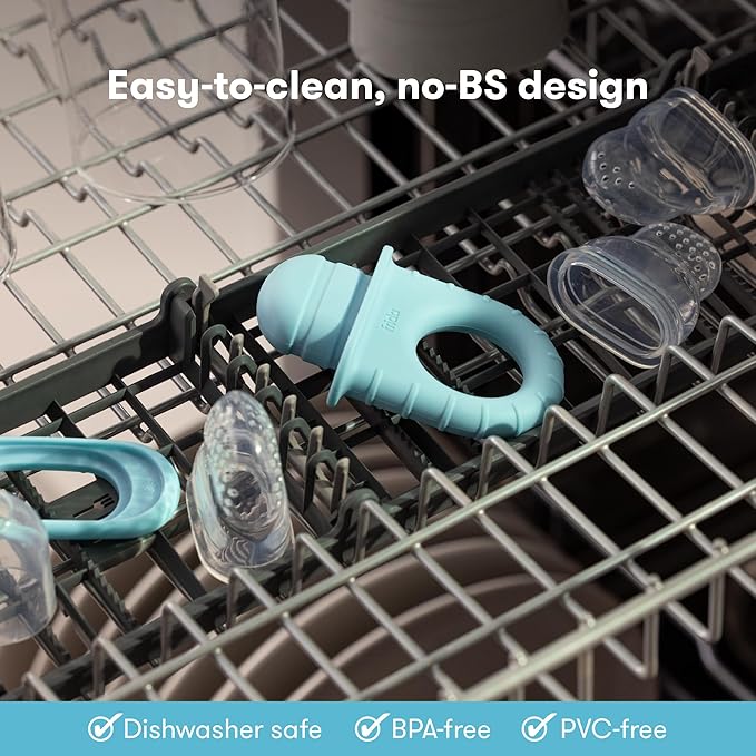 - FOOD INTRODUCTION: Fill the silicone feeder with fresh or frozen fruits, vegetables, yogurt, purees, breastmilk, or ice cubes. It's the perfect fruit teether for babies.
