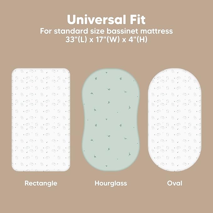 - 2-Pack Bassinet Fitted Sheets - KeaBabies Isla Bassinet Mattress Sheets, sized at 33" x 17" with a depth of up to 4", provide a universal fit for all bassinet mattress pad types. They can be used as hourglass, oval, rectangle bassinet sheets.
