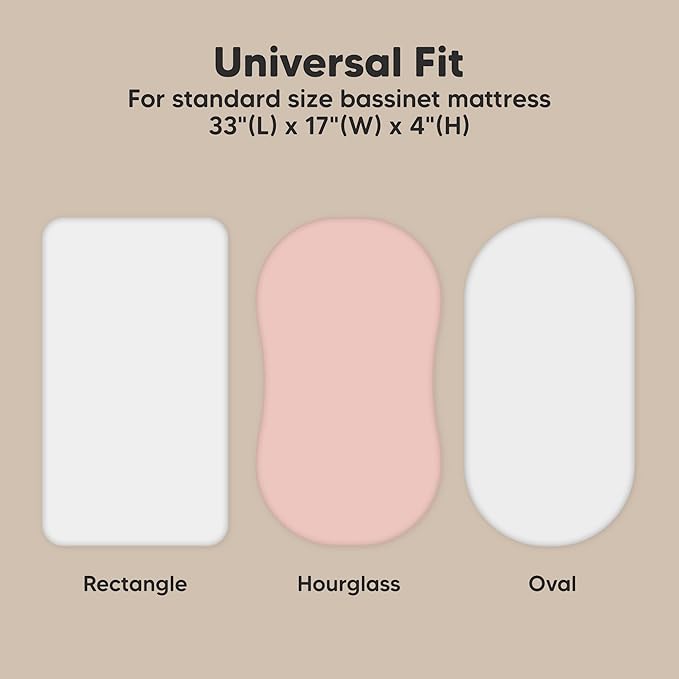 - 2-Pack Bassinet Fitted Sheets - KeaBabies Soothe Bassinet Mattress Sheets, sized at 33" x 17" with a depth of up to 4", provide a universal fit for all bassinet mattress pad types. They can be used as hourglass, oval, rectangle bassinet sheets.