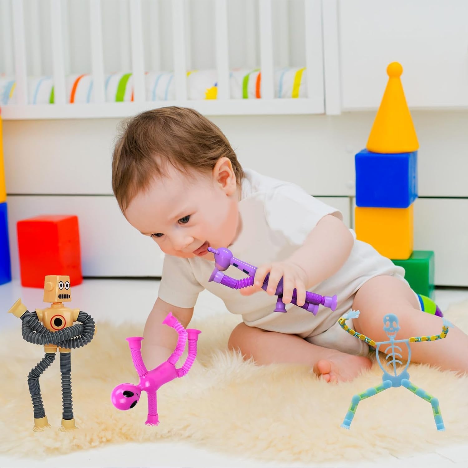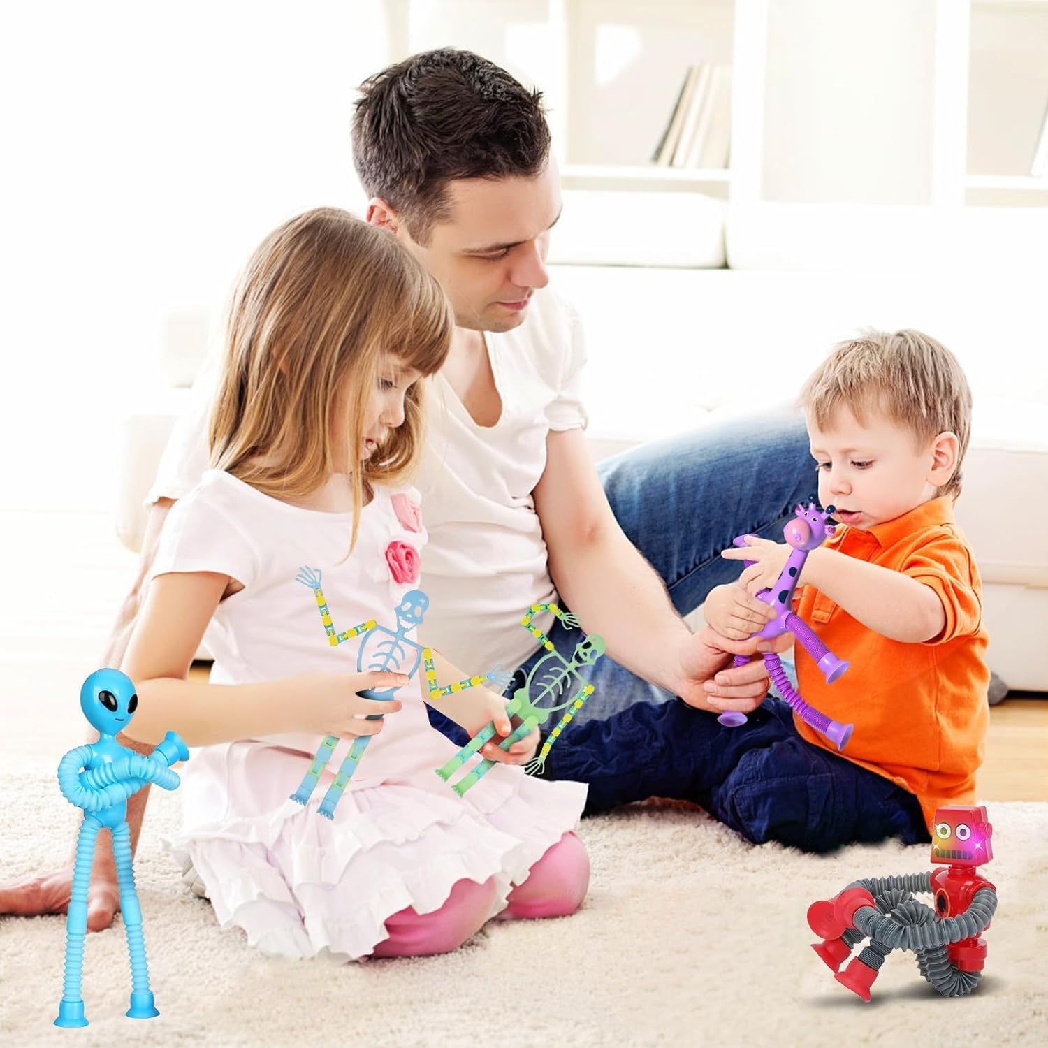 Easter Basket Stuffer Gift for Toddlers Kids Robot Sensory Travel Toys 4Pcs for Boy Year Old Ages 3 4 5 6 7 8 9, Airplane Travel Activities Suction Autistic Valentine Pop Tube Autism Fidget Toys