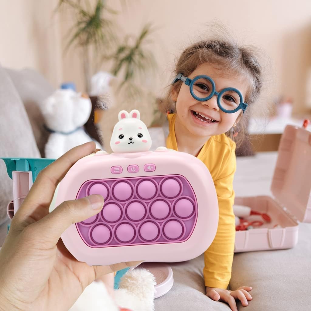 - 【Easy to carry】: The fast-push game console has a suitable size and durable design, making it perfect for travel or outdoor/indoor activities. It can be played with friends or parents at parties. Adjust the volume or mute it as needed. The kid's games with music and vivid sound effects, will attract children to play continuously for hours and keep them away from TVs and computers! It is also a good helper for you to relieve work pressure!