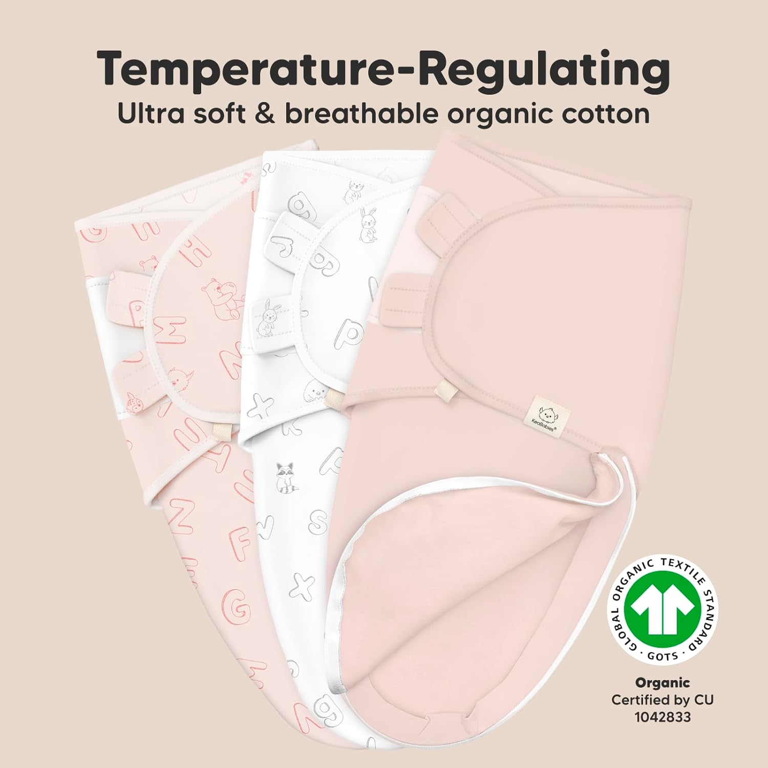 Baby Swaddle Sleep Sacks with Zipper - 3-Pack Swaddles for Newborns 0-3 Months, Infant, Baby Girls, Boys, Soft & Durable Newborn Sleep Sack, Easy Diaper Change Swaddling Blanket (ABC Land Rose)